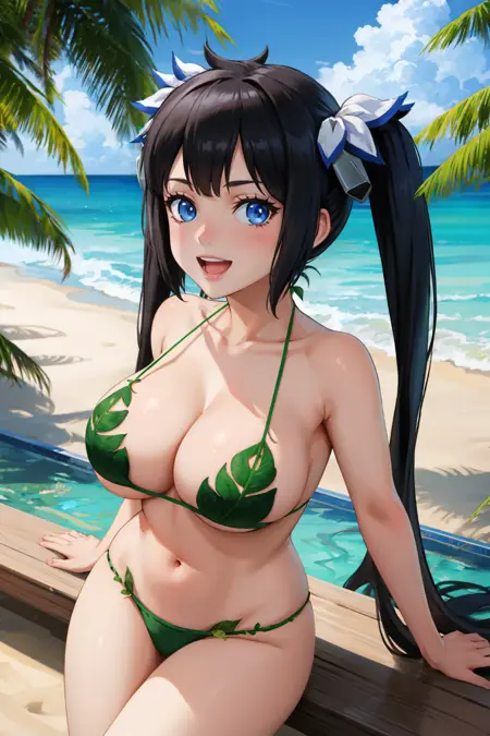 Add "hair ornament, leaf bikini" for her leaf bikini.