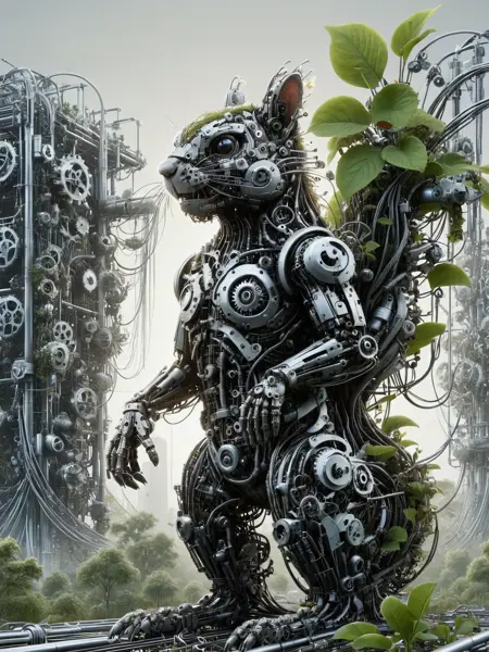 このLoRAは、有機物が機械に駆逐されたディストピア的な未来へと導きます。機械、ロボティクス、未来的なデザインの要素を組み合わせ、自然な生物を複雑で関節のあるオートマトンとして再構築し、高度なテクノロジーに満ちた冷酷な未来を想起させます。