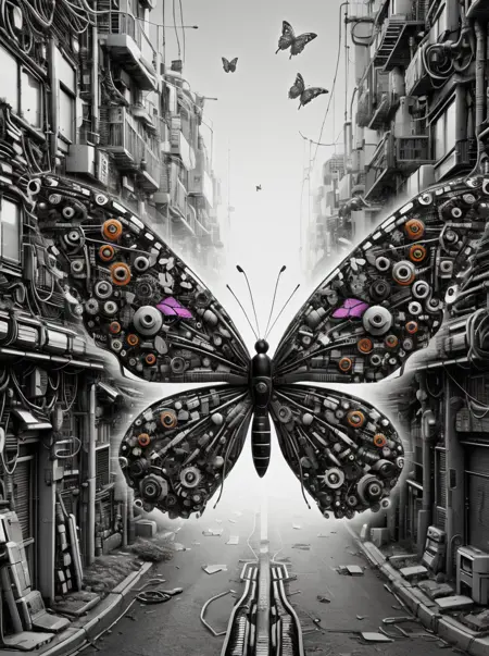 This LoRA takes you to a dystopian future where organic has been surpassed by the mechanical. It combines elements of machinery, robotics, and futuristic design to re-imagine a natural creature as a complex, articulated automaton, evoking a sense of a high-tech, bleak future.