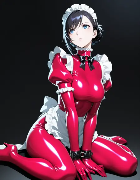 dr3ss, bodycon 드레스, 라텍스, 치마, (elbow gloves), 장갑, 주름진 퍼프 슬리브로 호출.