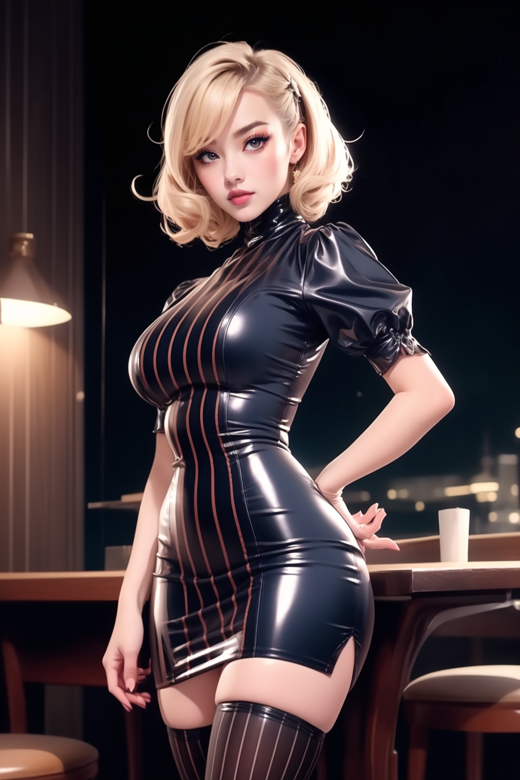 dr3ss, bodysuit or bodycon, short puffy sleeves, latex can help, (see-through)