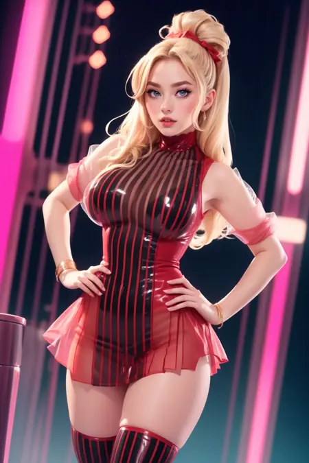 SDXL: Euler A would probably calm down the stripes. remove bodycon if things are getting out of hand.