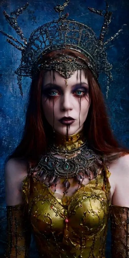As it is, the LORA generates some cool images. When I combine it with my face paint LORAs, I get some creepy looks. Works best in my opinion at full strength. I'm including the training set so you can see what I am talking about. This first version was just captioned "sl4v1ccr0wn". In the next version I am going to add more detail to the captioning of the training set so I can capture some of the more interesting features.