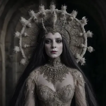 「sl4v1ccr0wnwh1t3」:宝石で飾られた特徴的なスタイルの頭飾りを生成します。
