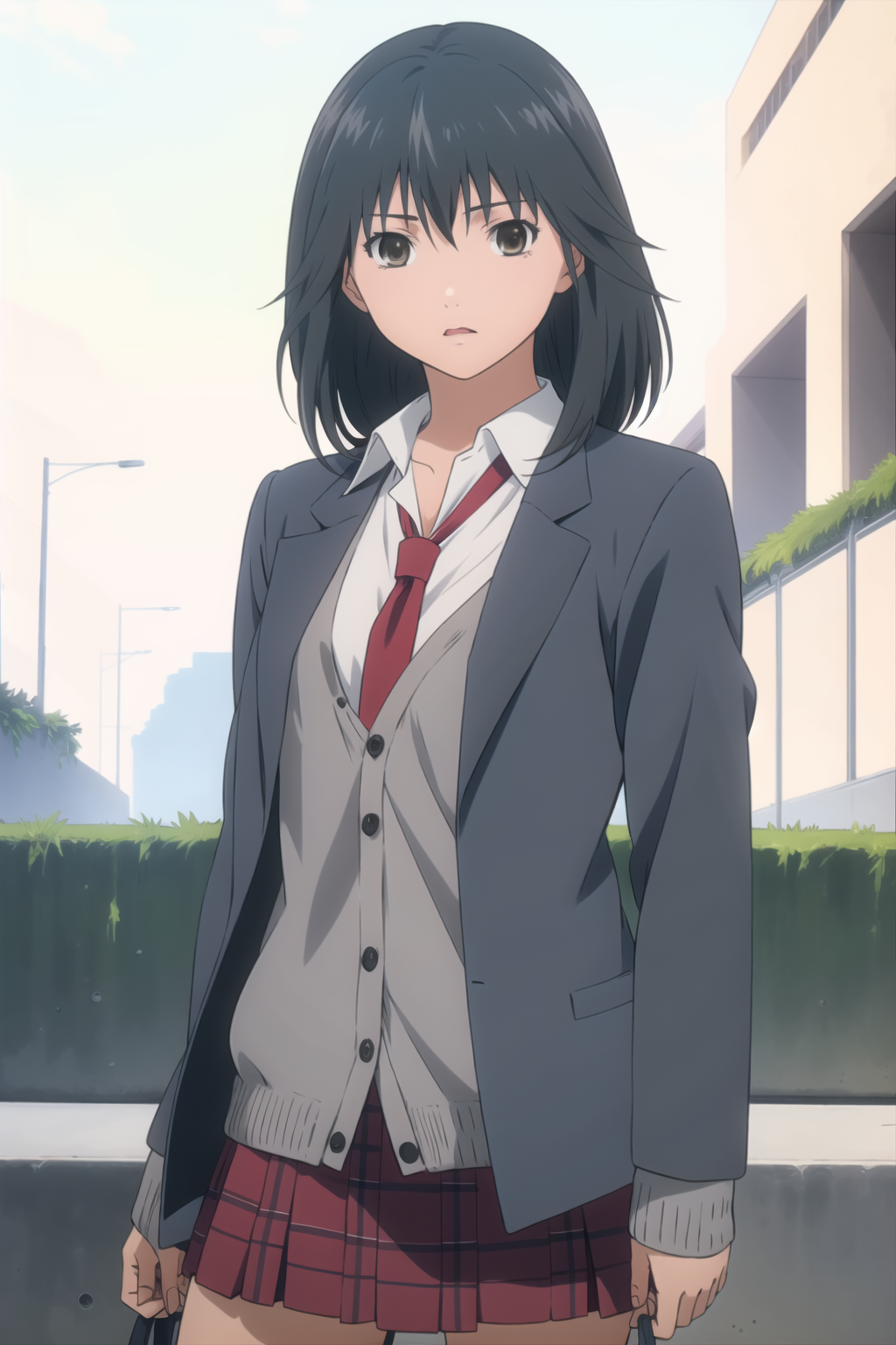 Outfit: skirt, school uniform, necktie, plaid skirt, jacket, blazer, plaid, cardigan, pleated skirt, (Outfit11 tag in pony version)