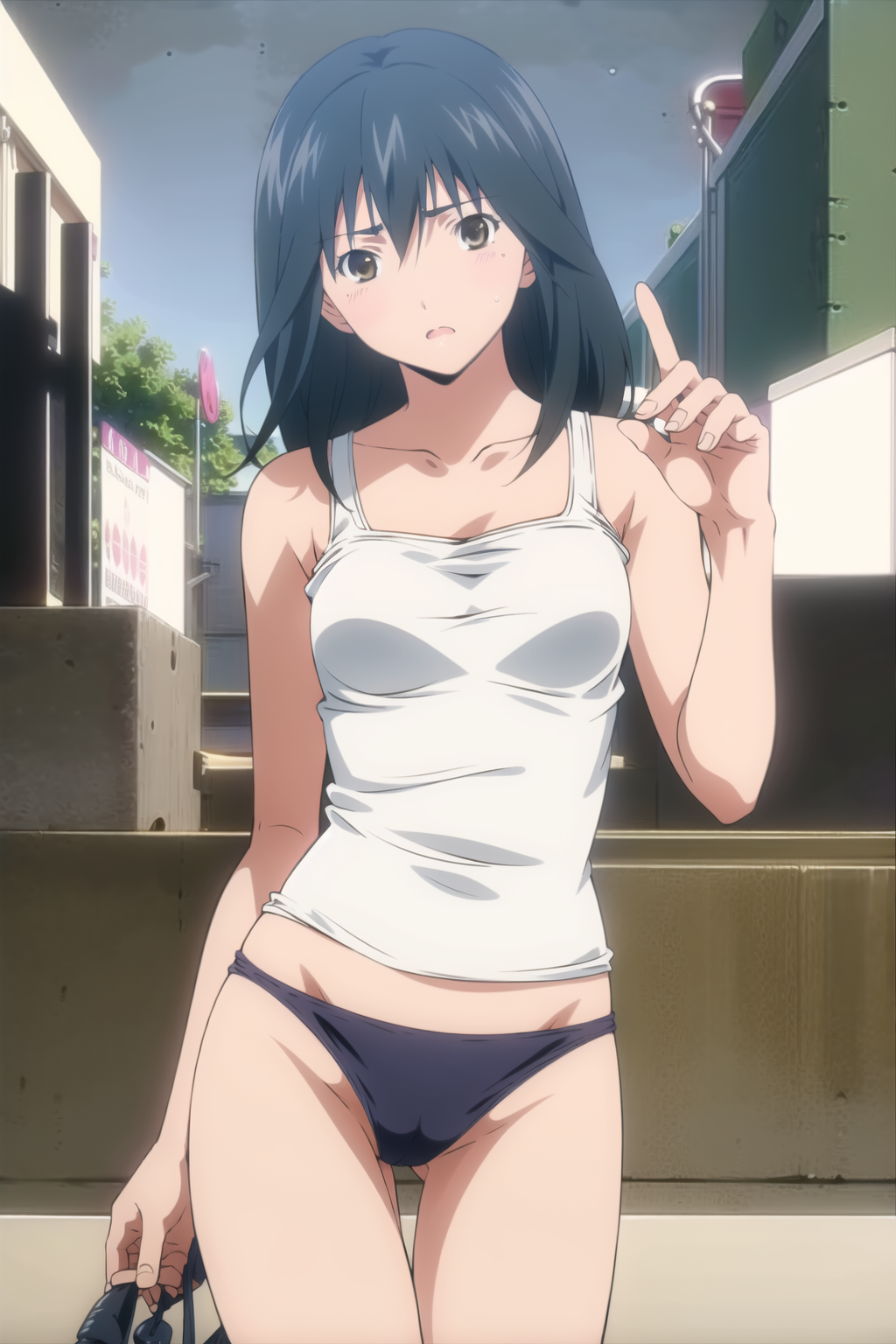Change Outfit and Background (Add parenthesis): (background:1.2), (outfit:1.2), (pose :1)