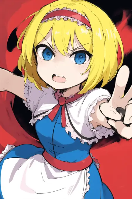 ICG,blue eyes,blonde hair,blue dress