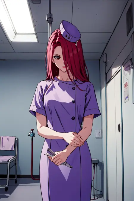 The model is trained with anime screen scrapes, official artworks and fan arts. To draw her in the purple nurse uniform seen in the anime, use "purple dress, hat, nurse". Note AI might draw two hats... To draw her in the sexy form of bikini barrier mage, use "ropes, underboob". Note whole Ruka is technically a nurse, this model doesn't work very well with my nurse uniform model, mostly due to the unconventional placement of nurse cap in the original anime... But otherwise, it is a flexible model and will work well with other clothing and outfits.