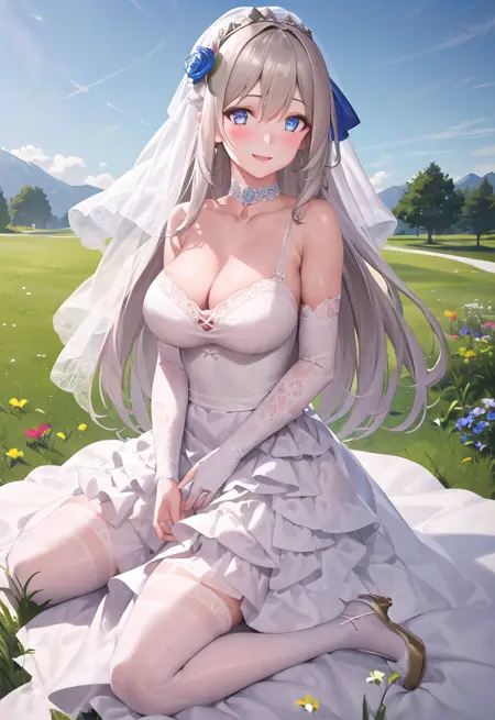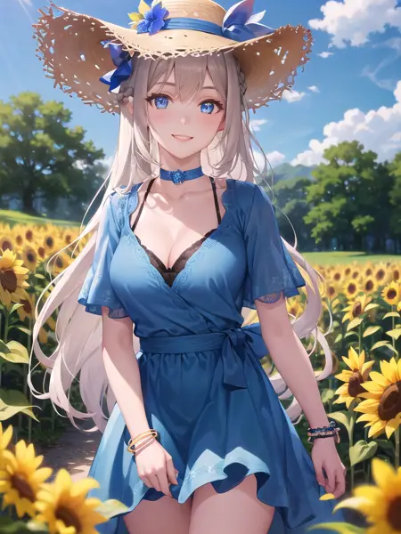 并未完整训练所有游戏内服装,因为感觉服装种类越多,训练越困难。受限于我对Lora训练集的熟悉程度与设备性能,最终仅勉强完成了四种服装的训练,分别为:military、weddingdress、sunhatbluedress、bikini(另有一种dark blue wedding dress未进行训练,可能因换衣prompt导致……)