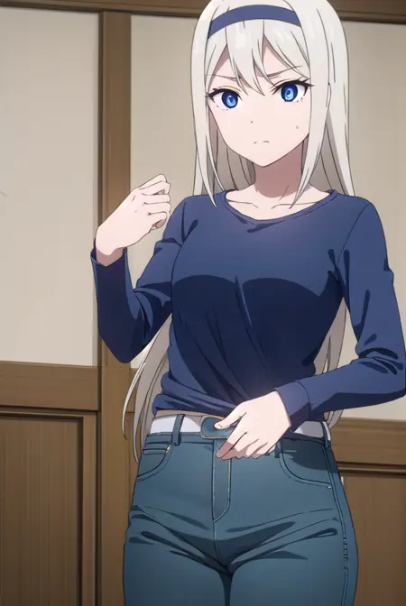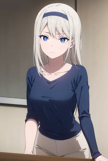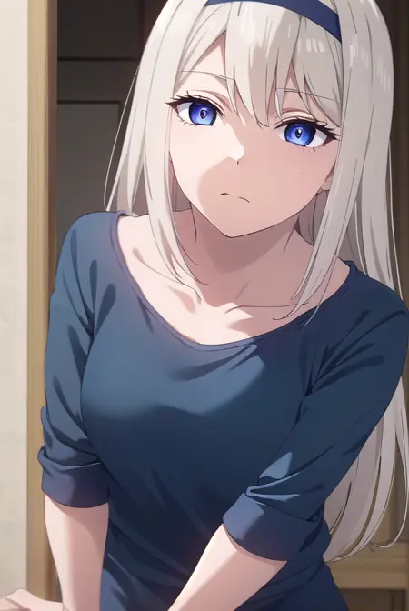kei shirogane, long hair, blonde hair, blue eyes, white hair, hairband,