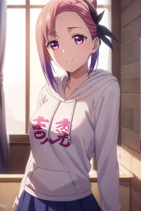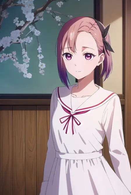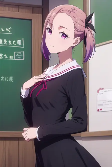 tsubame koyasu, short hair, hair ribbon, pink hair, purple hair, multicolored hair, (pink eyes:1.3), gradient hair, (forehead:1.2),
