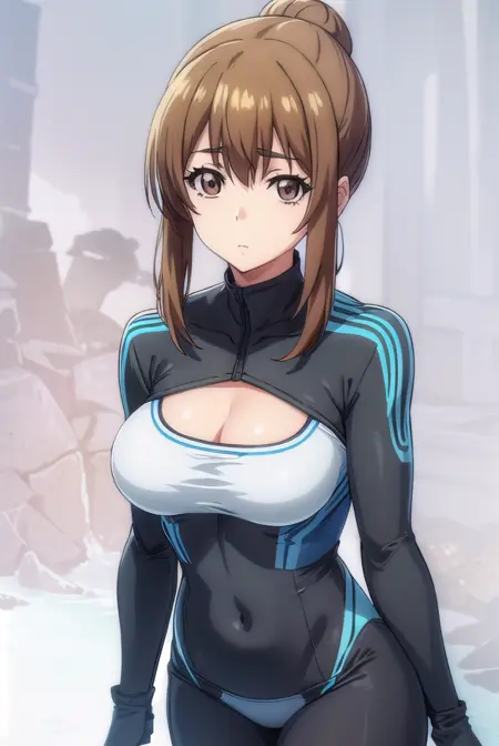 nanaka kotegawa, brown hair, brown eyes, hair bun, single hair bun, sidelocks,