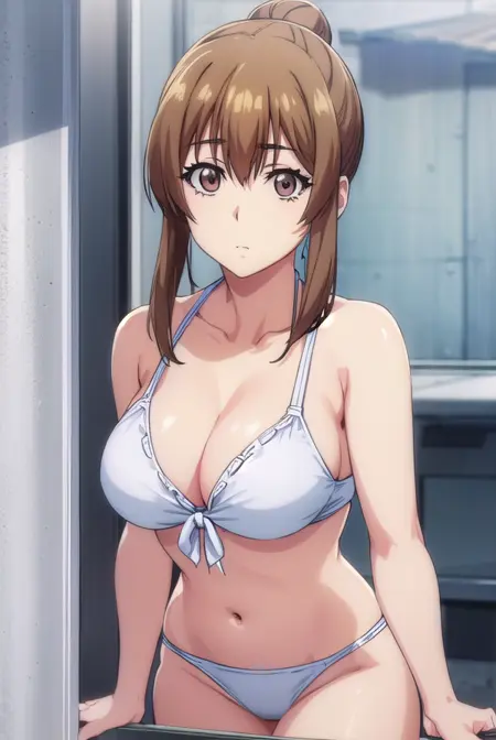 navel, cleavage, swimsuit, bikini, bodysuit, white bikini, front-tie top, bikini top only, wetsuit,