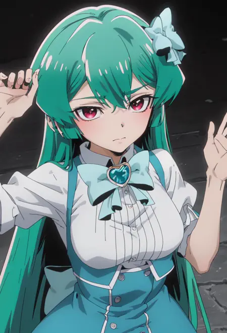 触发词为 sayo_minakami_mahoushoujoniakogarete,剪枝标签为 green_hair, long_hair, breasts, red_eyes, bow, hair_bow。当某些特征(如发色)有时不够稳定时,您可以将这些标签添加到提示词中。