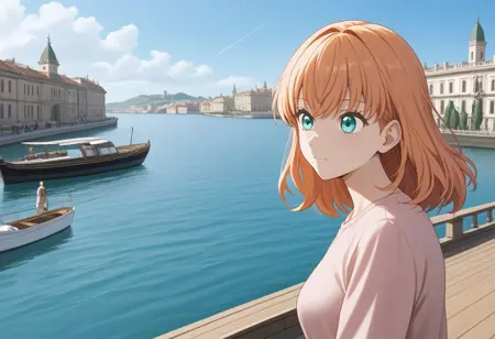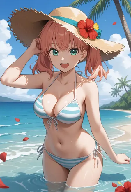kaho_h, pink hair, blonde hair, orange hair, aqua eyes