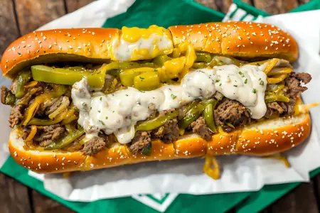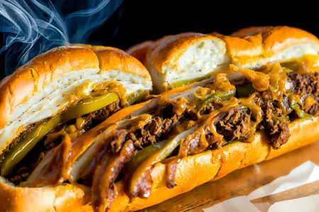 Use cheesesteak to activate. You can use prompts like bokeh, from above, and food photography for better angles. It also likes the words gloss and smoke if you wanna make it look extra delicious.