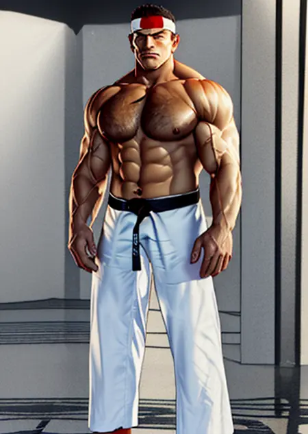 옷: (유도/하얀 바지), (무술/블랙 벨트), (일본/원형 헤드밴드), (나무 샌들), (카르디널 블랙 헤어), 팔찌