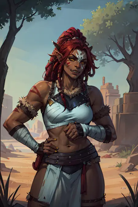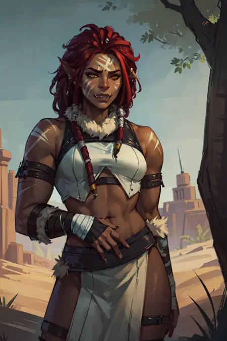 さらに muscular, glowing eyes, face paint, fangs, tusks で強化可能です。