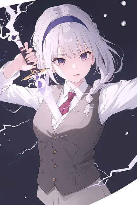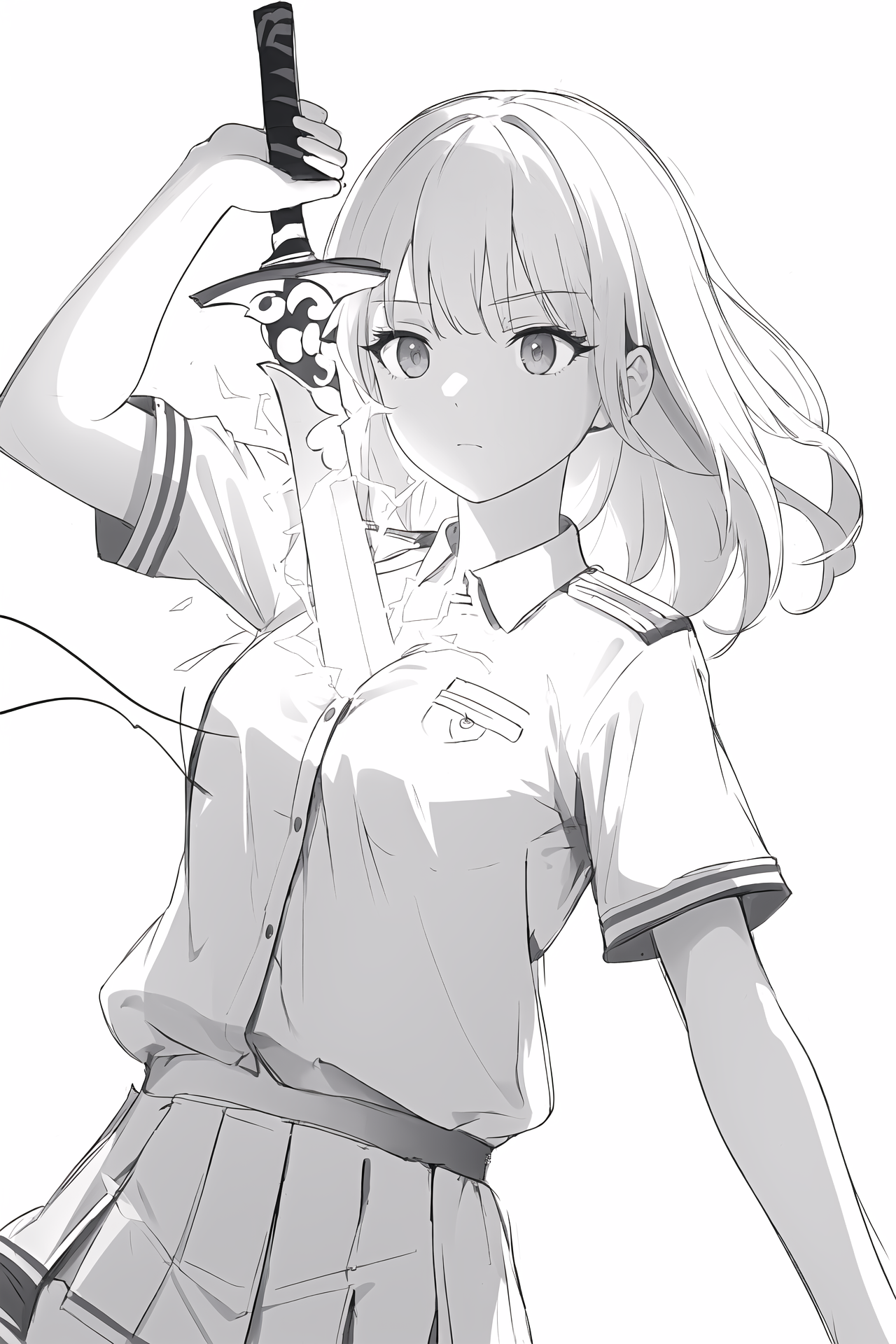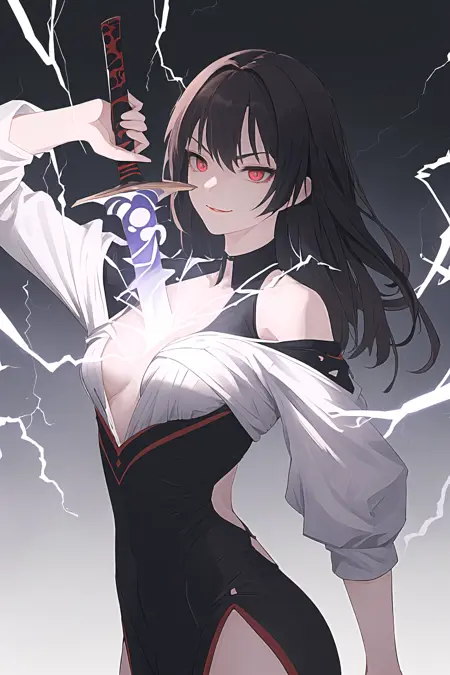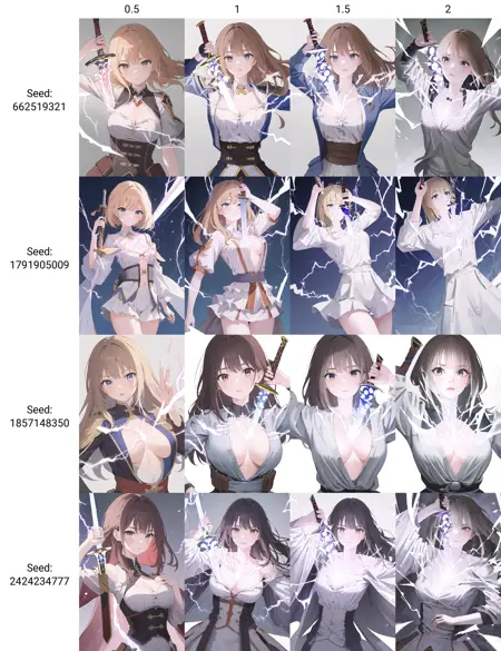 雷电将军拔剑姿势 Lora,效果不是很好但很有趣。因为 AI 不擅长画手和剑,所以需要一定的抽卡。
