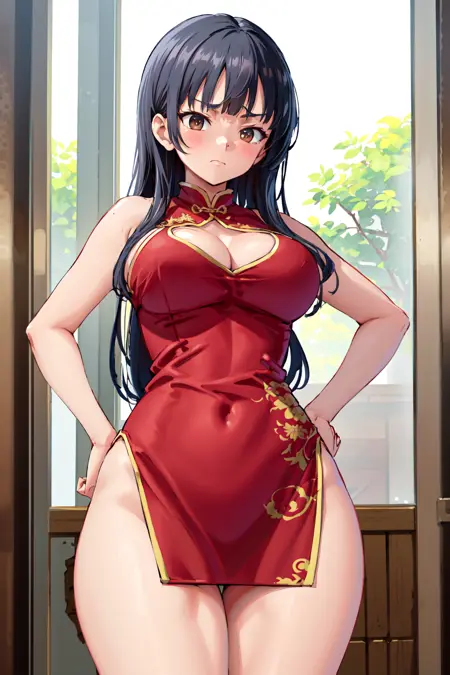 • ccanna, 긴 머리, 땋은 머리, 앞머리, 귀걸이, 큰 가슴, 코트, 갈색 코트, 빨간 드레스, 흰 셔츠, 터틀넥, 치마, 팬티스타킹, 검은 팬티스타킹