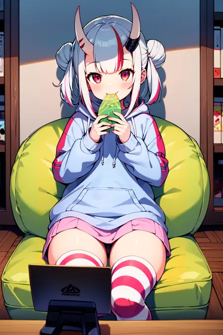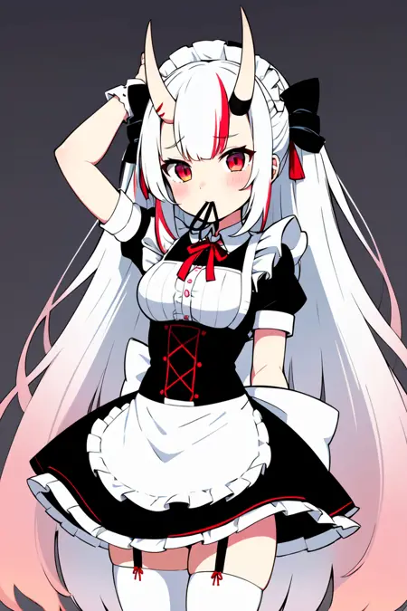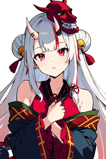 ๊ทธ๋ ๋ฅผ ๋ถ๋ฌ์ค๋ ค๋ฉด ๋ค์ ํ๊ทธ๋ฅผ ์ฌ์ฉํ์ธ์: nakiri ayame, 1girl, oni horns, multicolor hair, long hair, red eyes, white hair