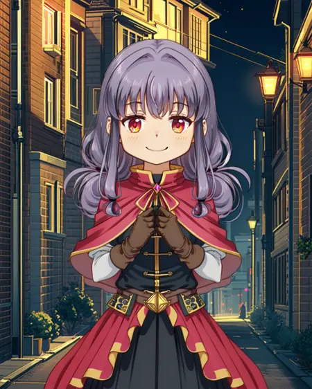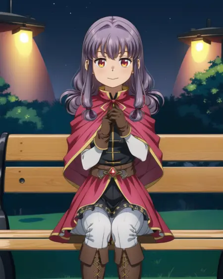 Magical outfit: mgrcinamimitsuru, inmmgc, black hairpins, red capelet, black blouse, brown belt with gem, short over long sleeves, white sleeves, brown gloves, black medium skirt, red overskirt, white pants, brown knee boots