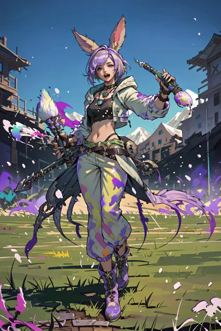 To get the hat AS WELL please use "hat, hat feather" - we left that out of the tags because if you're doing other FFXIV race loras or inferring other types of characters, you may not want the hat.