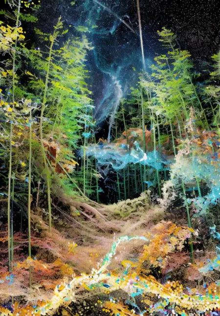 이 모델은 특히 숲과 강을 포함한 우리 스타일의 입자(Graphics) 장면을 생성할 수 있습니다.
