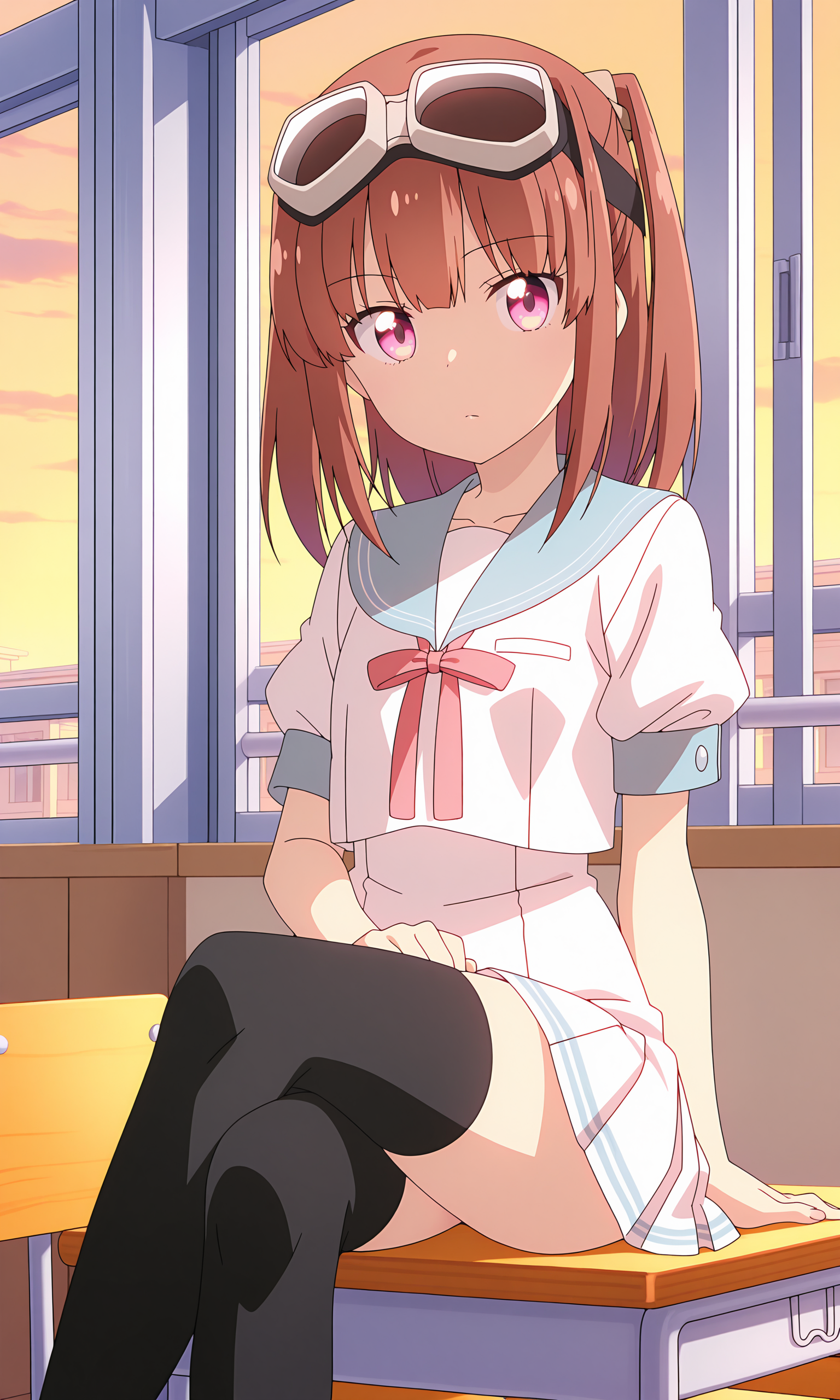 school uniform, serafuku, pleated skirt, white skirt, sailor collar, white shirt, short sleeves, neck ribbon, red ribbon