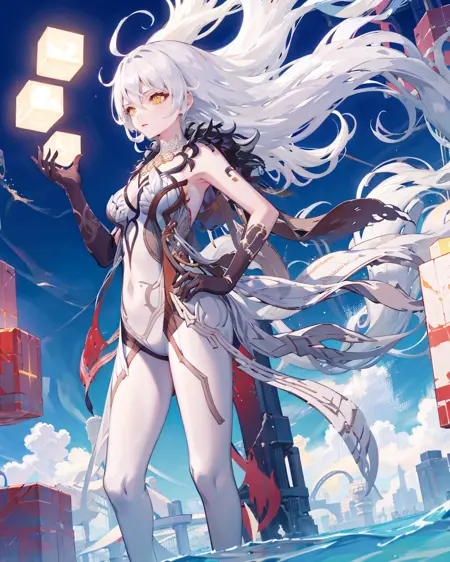 제안된 프롬프트: 흰색 팬티스타킹, 떠 있는 머리카락, 떠 있는 물체, 큐브