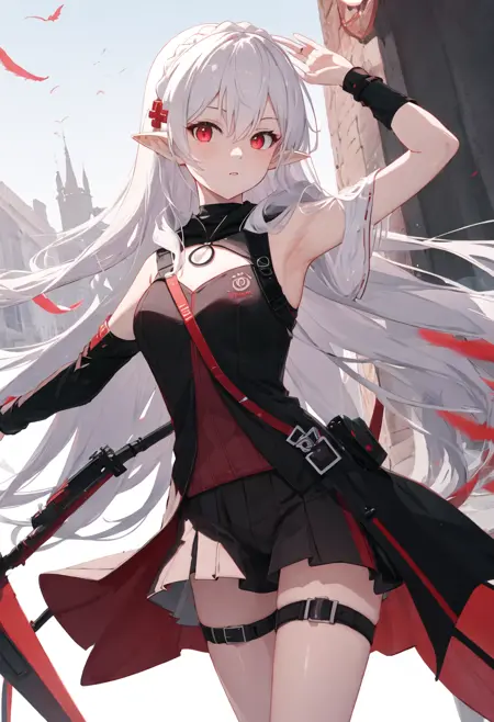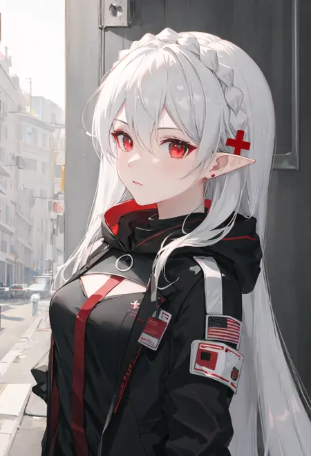 トリガーワードは warfarin_arknights であり、削除されたタグは long_hair, red_eyes, pointy_ears, braid, hair_between_eyes, white_hair, crown_braid, very_long_hair, hair_ornament, breasts, grey_hair です。ある特徴(例:髪の色)が一時的に安定しない場合、これらのタグをプロンプトに追加してください。