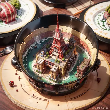 mini\\(ttp\\)を使用します。モデル効果を引き出すには、miniature,landscapeを使用します。このモデルがすでにマクロ的な効果を持っている場合、このLoRAのエフェクトを大幅に強化できますが、無くても問題ありません。最後に容器の名前(例:plate, cup, bowlなど)を入力することで、ミニチュア都市をその中に収めることができます。