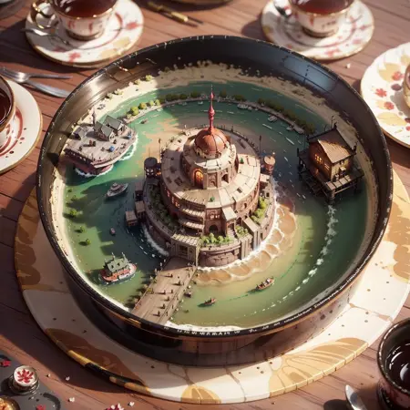 然后使用传统方式调用 LoRA,例如:<lora:miniatureWorldStyle_v10:0.6>
