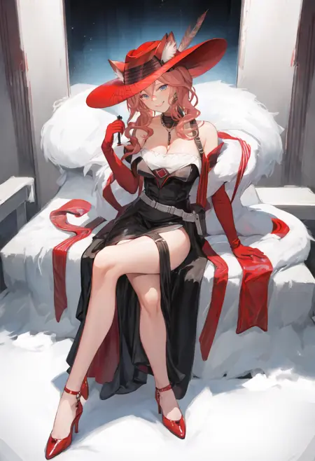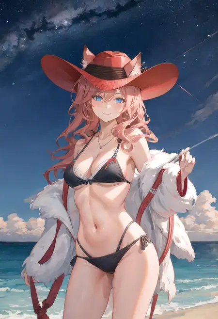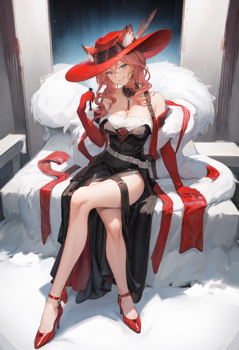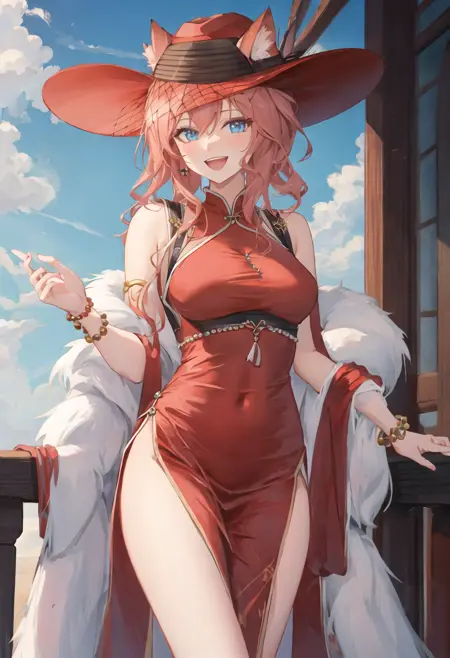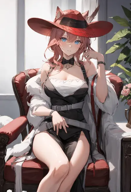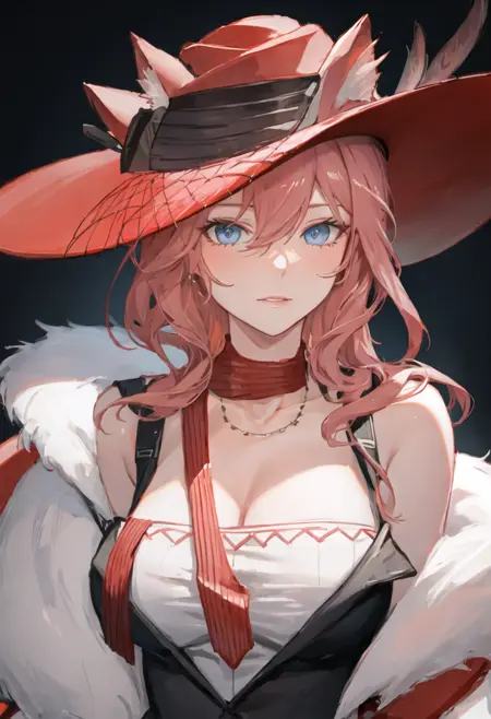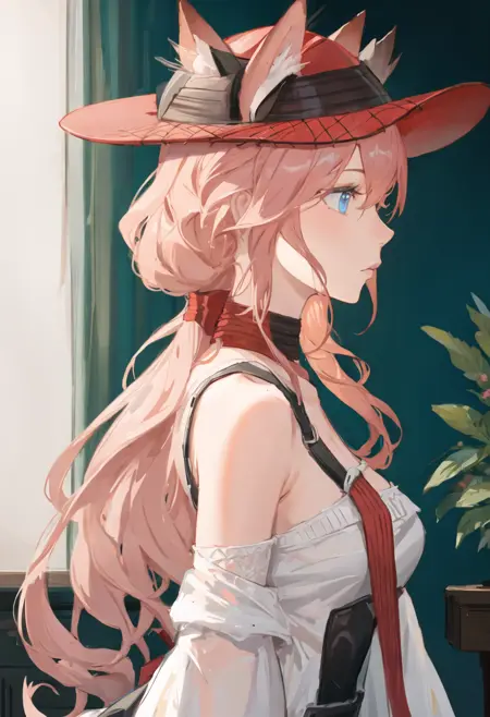 - The pruned character tags are animal_ears, blue_eyes, breasts, long_hair, bangs, cat_ears, pink_hair, ears_through_headwear, red_headwear, hair_between_eyes, large_breasts, hat. You can add them into prompts when core features (e.g. hair color) of character is not so stable.