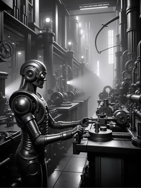 this time something different. I tried to emulate the expressionistic retro futurism of the famous German silent movie Metropolis from 1927.