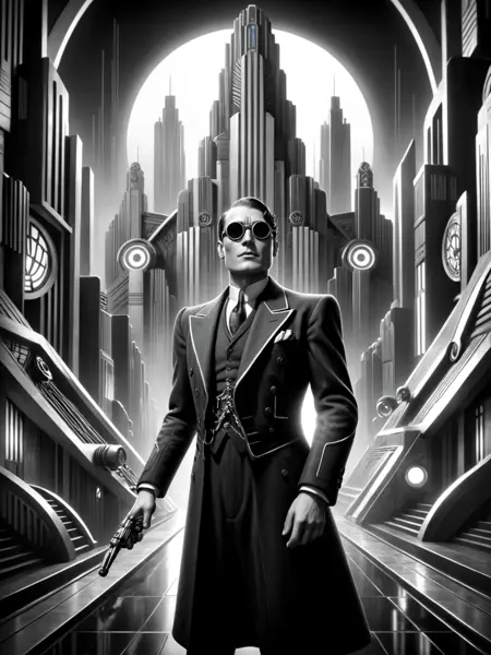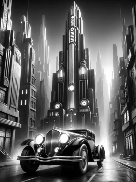 this time something different. I tried to emulate the expressionistic retro futurism of the famous German silent movie Metropolis from 1927.