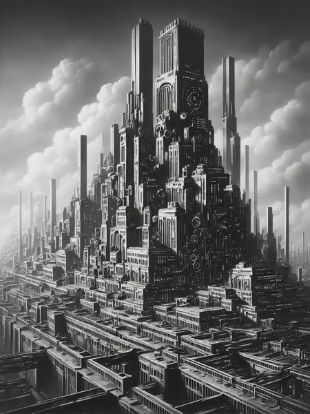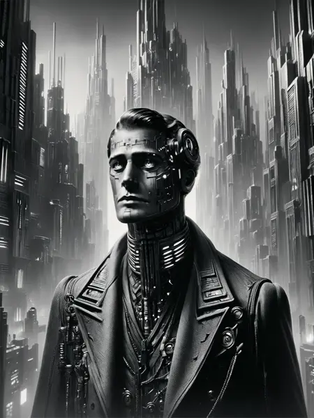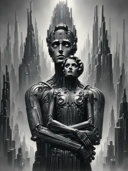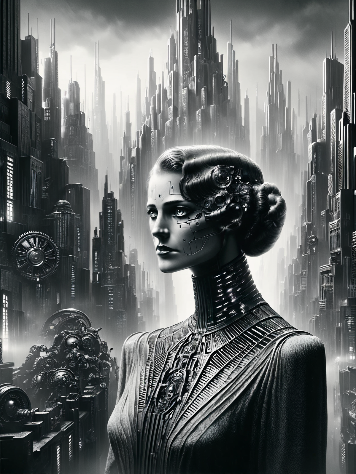this time something different. I tried to emulate the expressionistic retro futurism of the famous German silent movie Metropolis from 1927.