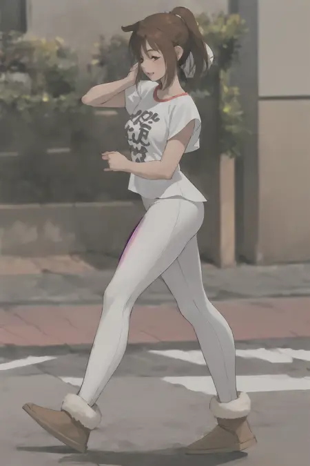 <lora:uggs_3750_lora_f32:1> uggs (masterpiece, best quality), 1girl, {white|caucasian|black|latinx|asian} skin tone, {18|24|30|40} y.o, {short|long|braided|ponytail|pigtail|pixie-cut|bun} {red|blonde|ginger|brown|tawny|frizzy|black|auburn} hair, {white|graphic|sports} {tee-shirt|hoodie}, {black|blue|grey|white} leggings, (full body:1.3), {outside|hallway|park|classroom|city sidewalk}, {front|3/4|side|rear} view