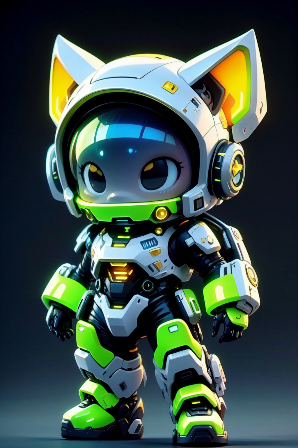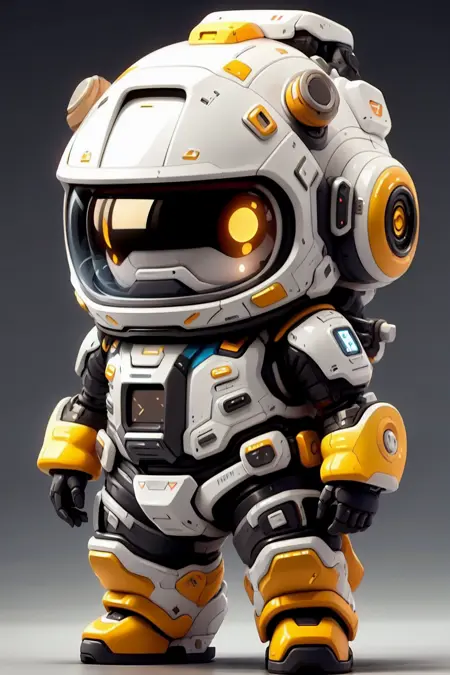 3D可爱化手办机甲,推荐竖构图,打开高分修复,重绘幅度不要太大0.4左右,触发词:guchen,提示词:chibi,mecha