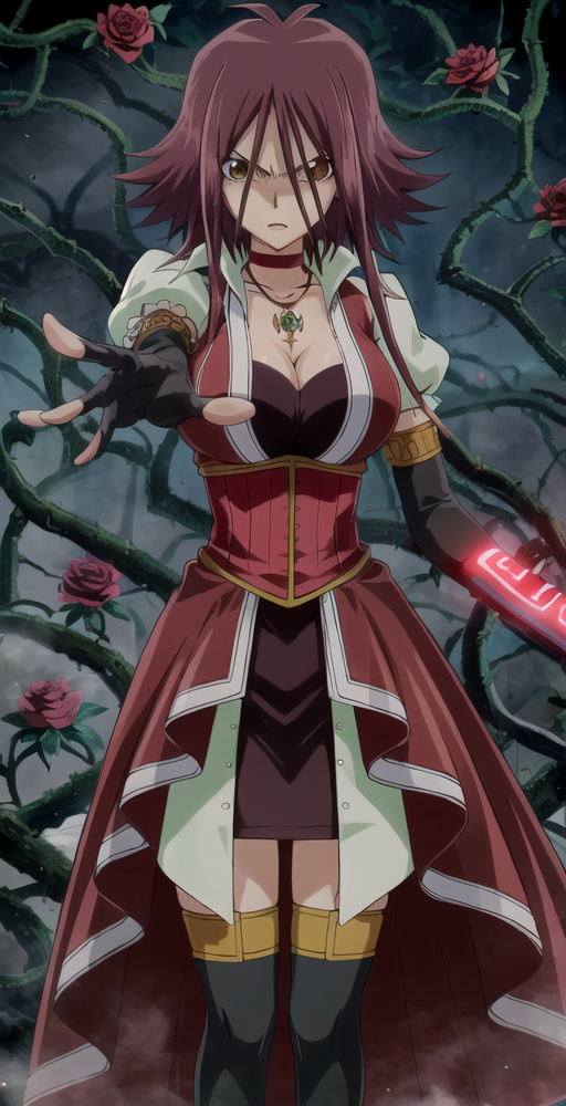 Main outfit, "duel outfit, hair ornament, pendant, under bust, gloves, long skirt, zettai ryouiki, thighhighs,"