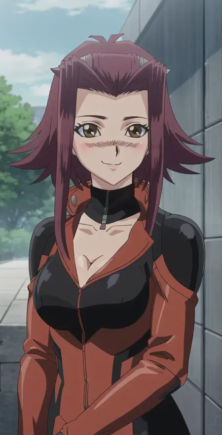 Motorcycle outfit, "motorcycle armor, cleavage, hair ornament, partially unzipped,"
