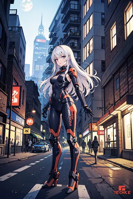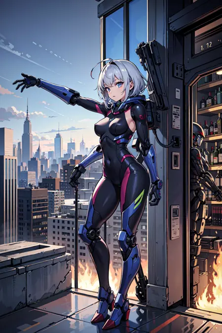 추천 프롬프트: 기계 팔, 테크웨어, 메카 미소,