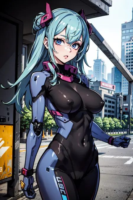 A recommendation prompt is mechanical arms. techwear, mecha musume,