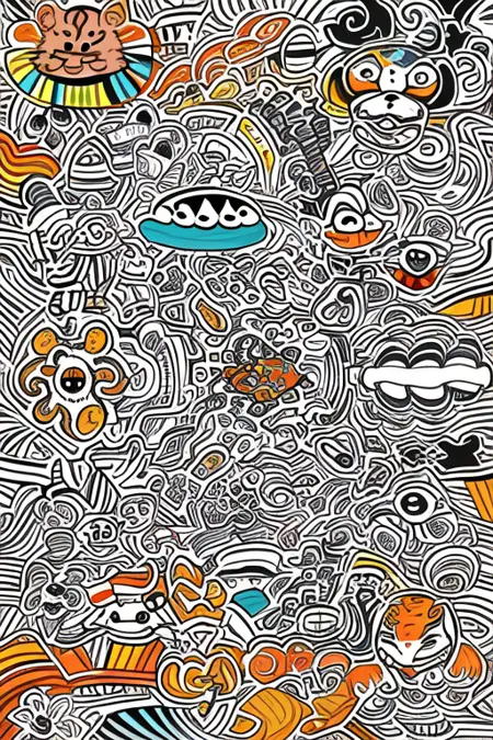 气泡类涂鸦风格,可加入主体关键词控制出图效果,支持黑白和彩色