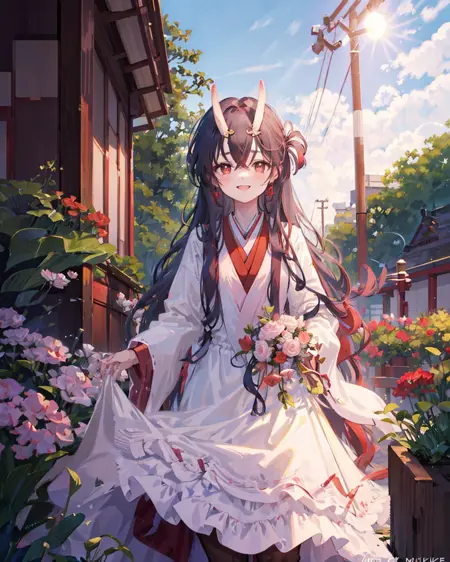 基于NAI训练的二次元lora。跟真人模型不兼容(要加“oni_horns”的tag)。