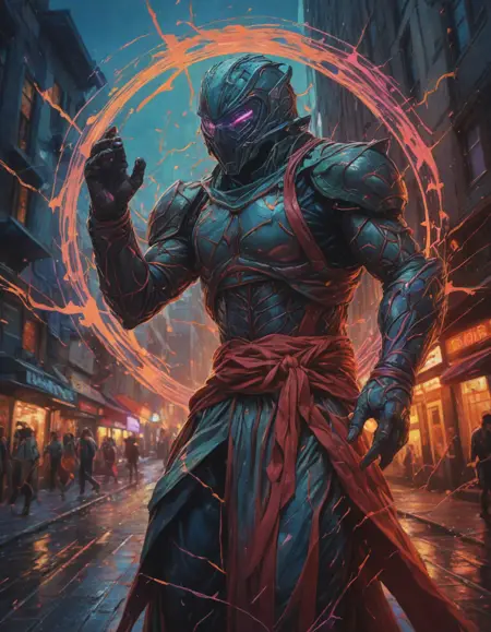 Merge 3 sliders with trigger blacklight photography, as a street fighter character, Shattered glass reflecting vibrant hues, dances in an ethereal swirl . A unique style. Examples at 0.7-1 strength.
