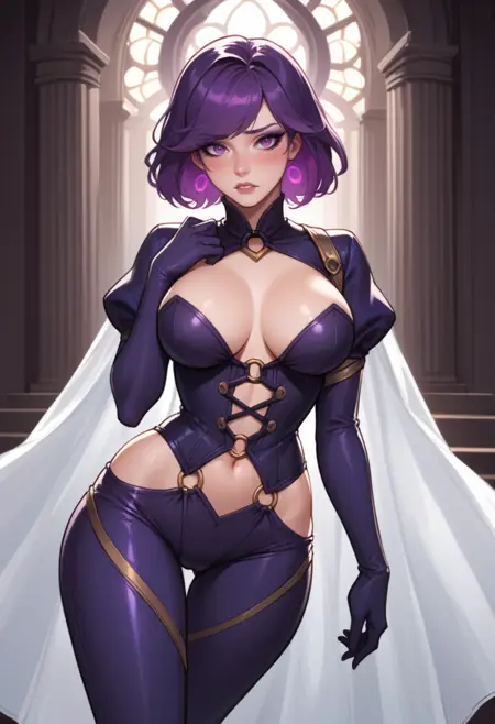 If you want to screw around with it's composition drop the str to 0.7, add navel, choker, corset, underboob cutout, whatever. It's more flexible at 0.7 at the cost of some of the theme. Add cloak, sleeves to the negs to remove the cloak. That's harder to do as it's probably one of the central learned themes.
