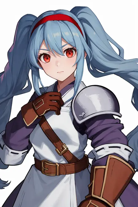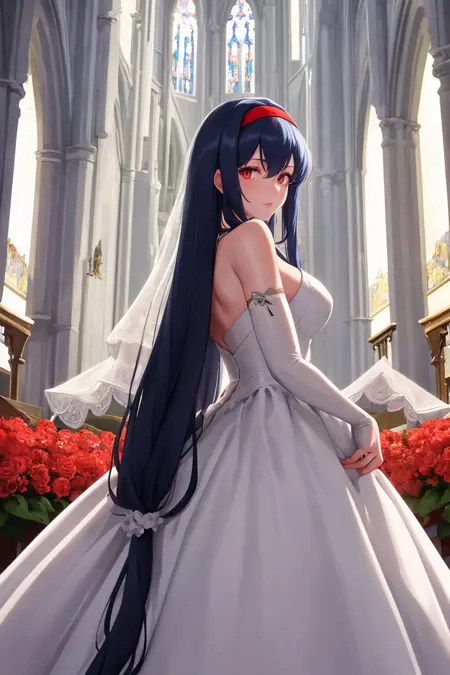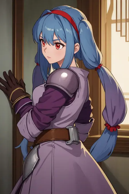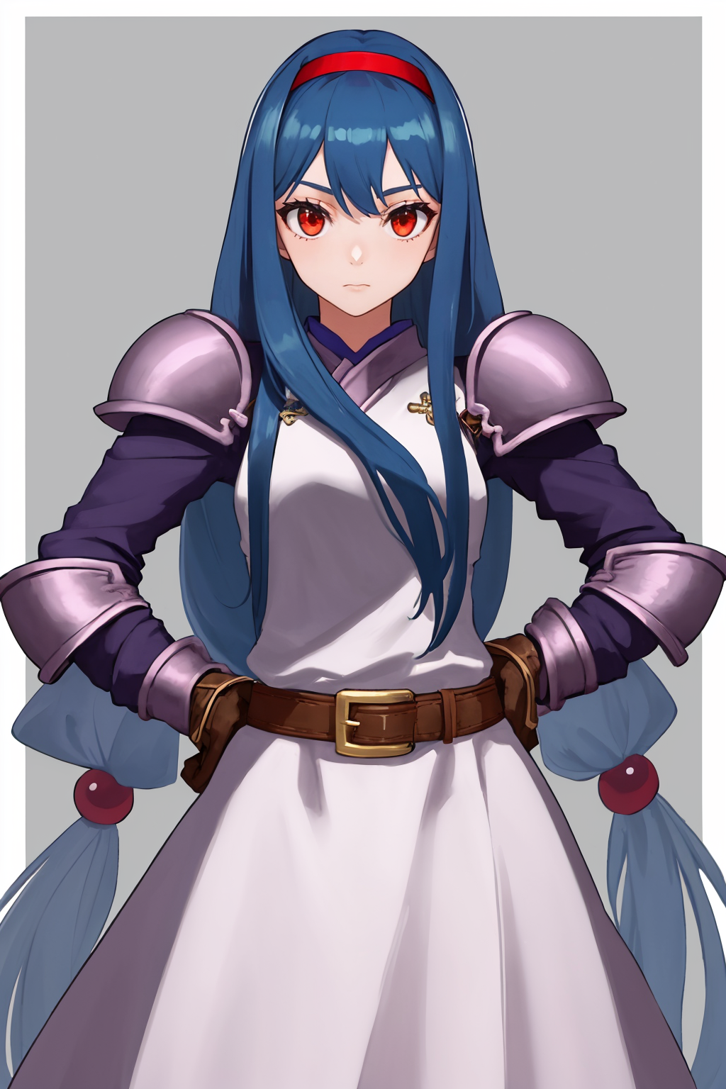 anastasia、赤いヘアバンド、ヘアチューブ、サイドロックス、低く結んだ長い髪、非常に長い髪、装甲ドレス、手袋、ベルト