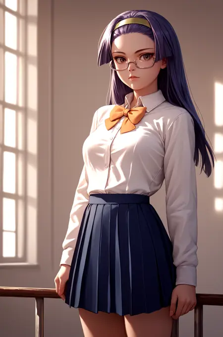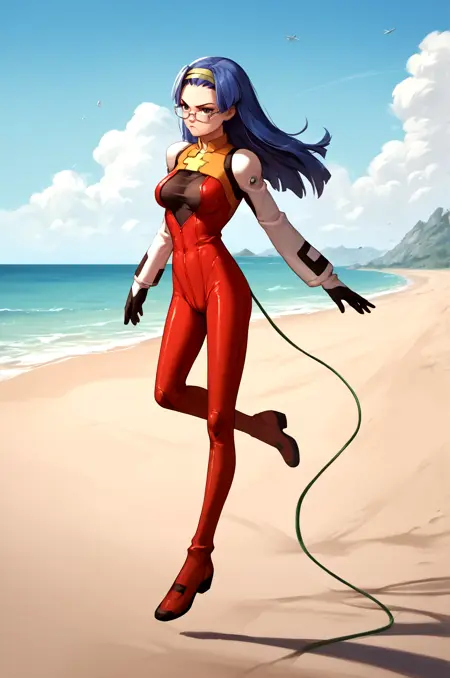 Example 1.5 Prompt for the insulator suit(The red bodysuit): arrester_blanket, 1girl, insulator_suit, hairband, long_hair, glasses, red_bodysuit, black_gloves, white long_sleeves