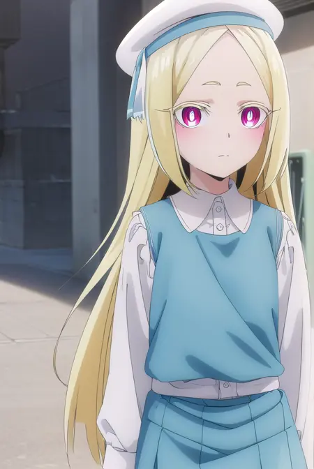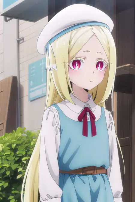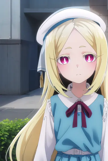 morino korisu, long hair, blonde hair, (red eyes:1.3), very long hair, (bright pupils:1.5),